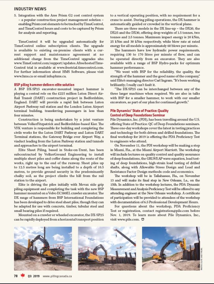 Piling Canada features Pile Dynamics' final seminars for 2019. Engineers are able to receive 6.5 professional development hours and have the option to take the PDA proficiency exam in Louisiana.