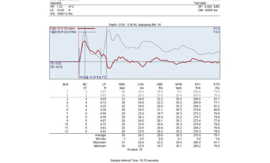 SPT Energy Calibration consists of measuring the energy transferred by the Standard Penetration Test (SPT) hammer to the SPT rod. GRL Engineers take these measurements with the Pile Driving Analyzer® (PDA) and using an SPT rod instrumented with strain gages and accelerometers. GRL Engineers may also estimate soil setup by conducting a torque test on the instrumented SPT rod.