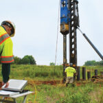 Dynamic monitoring requires attaching strain transducers and accelerometers to the pile. During impact driving, these measurements are converted to force and velocity records that are processed by a Pile Driving Analyzer or “PDA”. The acquired dynamic monitoring data can be used to estimate bearing capacity during driving with Case Method or iCAP®, or after data collection with CAPWAP® analysis. Compression and tension stress levels monitored during driving are compared to driving stress limits and allow field adjustment to the pile installation procedures if necessary. The dynamic monitoring results also provide information on soil resistance at the time of monitoring as well as on driving system performance. Since Pile Driving Monitoring occurs in real time, it can be performed with minimal delay to the foundation construction. GRL can perform Pile Driving Monitoring by having an engineer at the job site or remotely from the GRL office, using SiteLink®. Dynamic measurements can also be made during installation of vibratory hammer installed piles and sheets to assess installation issues and stresses.